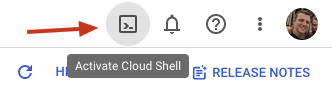 Navigate to the Dashboard and ensure your new project selected in the top drop-down. Then, in the top right hand corner of the screen, click the Activate Cloud Shell icon